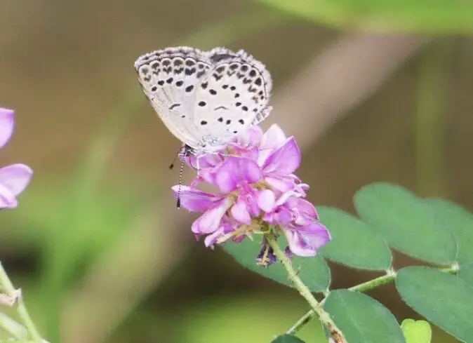 また、庭のプランターや歩道の植え込みの中に咲くカタバミという花があります。ヤマトシジミという小さなチョウの幼虫はこの葉を食べるので、比較的どこにでも見られるチョウです。シジミチョウの名前の由来は、シジミ貝の貝殻を広げた形に似ているのでこの名が付きました。