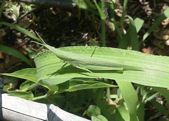 オンブバッタ | 11月まで | 花壇やイネ科の草原 | イネ科の葉 |